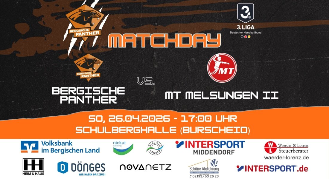 Beim vorletzten Heimspiel der Saison am 26.04.2026 empfangen die Bergische Panther die zweite Mannschaft der MT Melsungen in Burscheid. Die Partie steht ganz im Zeichen des Abstiegskampfs und verspricht aufgrund der Tabellensituation besondere Spannung.