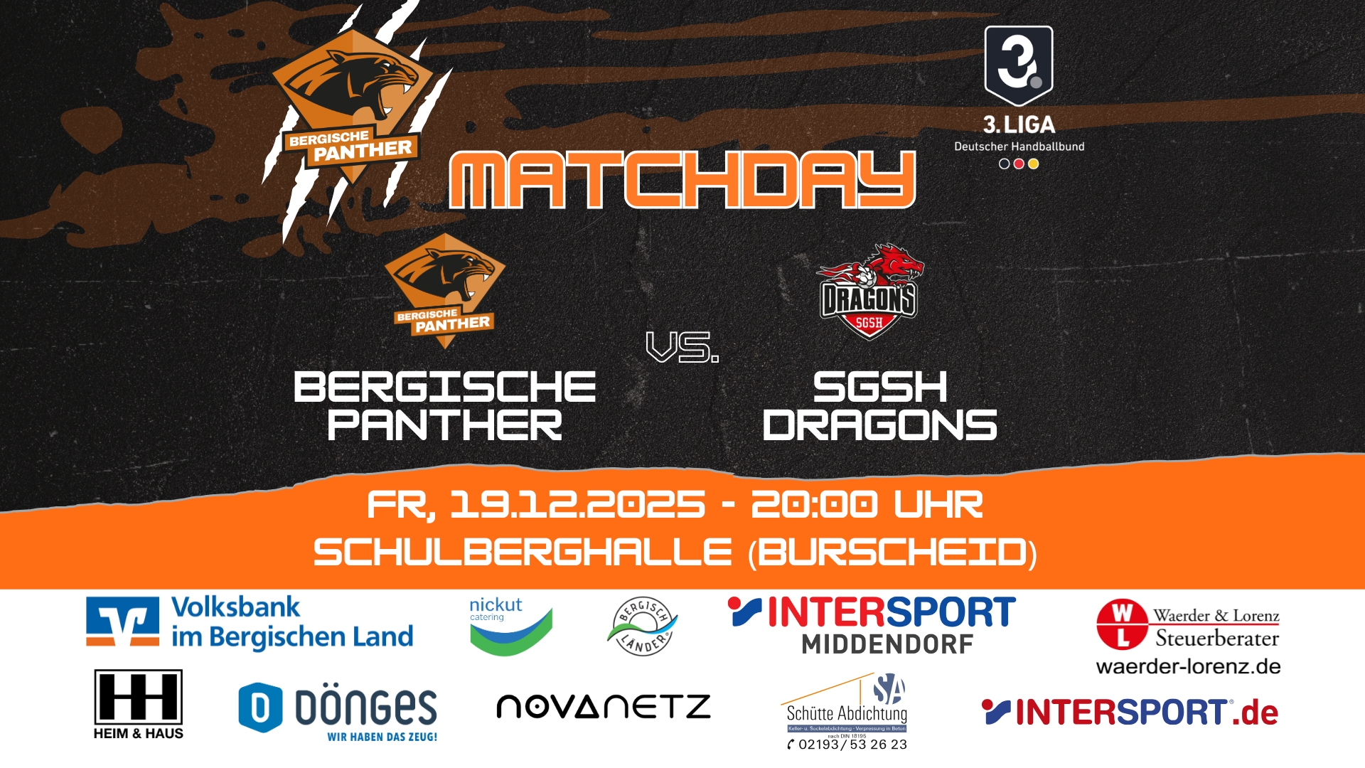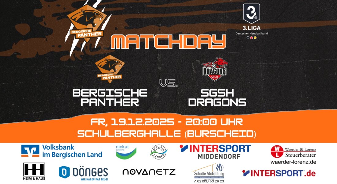 Am Freitag, den 19.12.2025, erwartet unsere Panther ein ganz besonderer Handballabend. Um 20 Uhr wird in der Schulberghalle das letzte Spiel der Hinrunde angepfiffen – zugleich das letzte Derby unserer Panther in diesem Jahr.