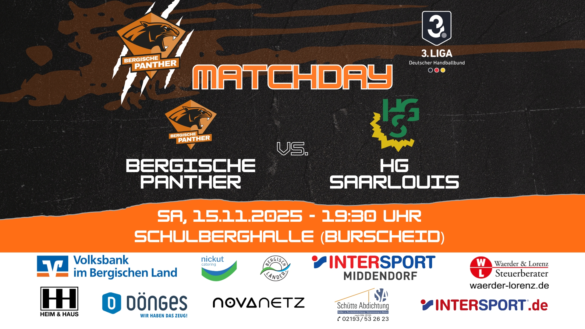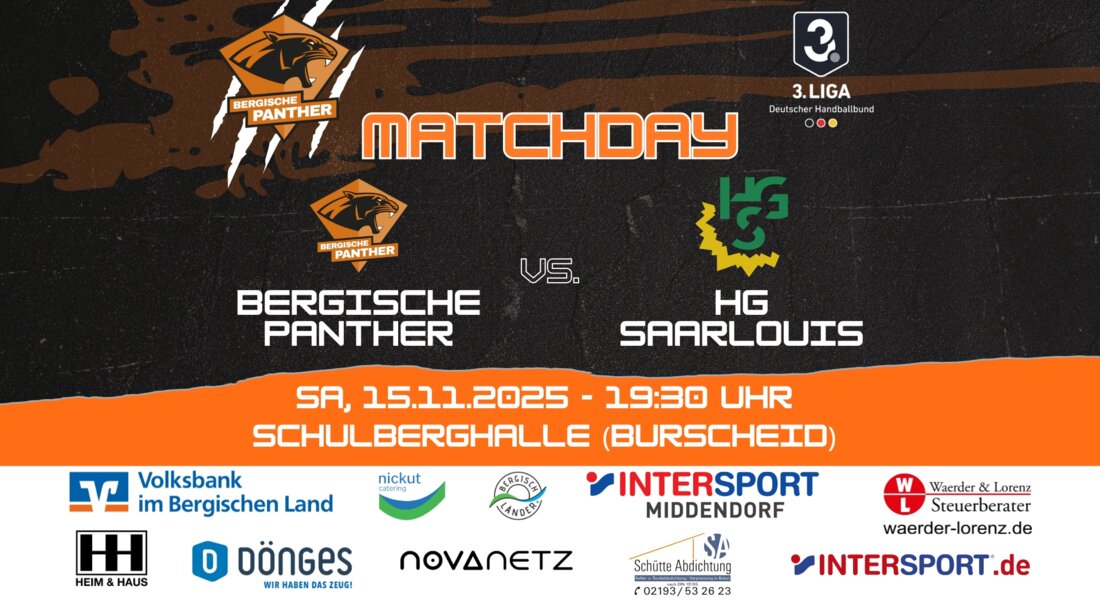 Nach dem Auswärtsspiel beim Tabellenletzten Homburg wartet auf unsere Panther am Samstag, den 15.11.2025, nun ein weiterer Prüfstein in der aktuellen Spielzeit. Der derzeitige Tabellenführer HG Saarlouis ist in der Schulberghalle zu Gast. Anwurf ist um 19:30 Uhr – ein Duell, das Spannung und Intensität verspricht.
