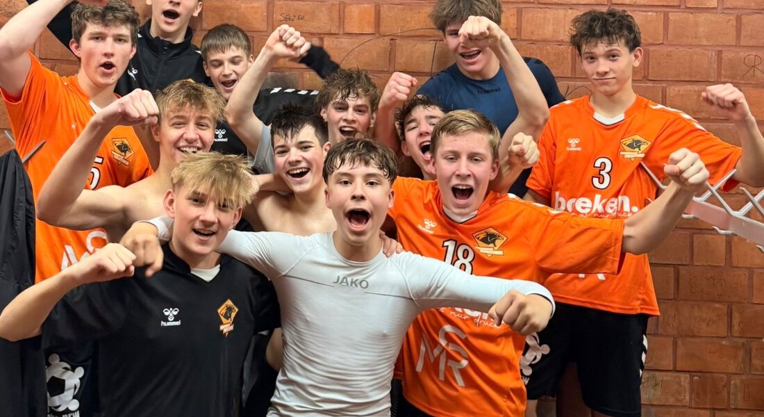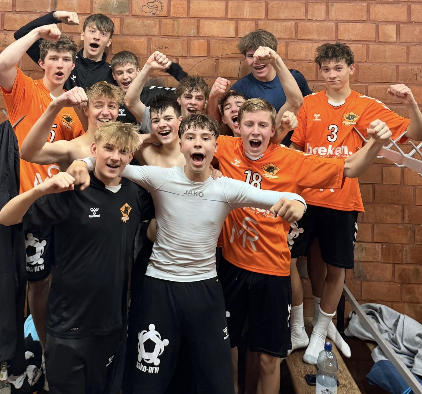 Weiter auf dem Weg in die Bestengruppe und das Viertelfinale um die Kreismeisterschaft bleibt männliche B-Jugend (Bild) nach dem 29:25 (11:14)-Auswärtserfolg bei der HSG Rade/Herbeck. Allerdings musste das stark ersatzgeschwächte Team von Niko Nesselrath und Lukas Weller lange kämpfen, ehe der Erfolg unter Dach und Fach war. Die Gäste lagen bis zum 18:19 (35.) immer zurück und drehten erst in der Schlussphase die Partie über 25:20 (44.) zu ihren Gunsten. Henry Wehres war mit 8 Treffern bester Torschütze.