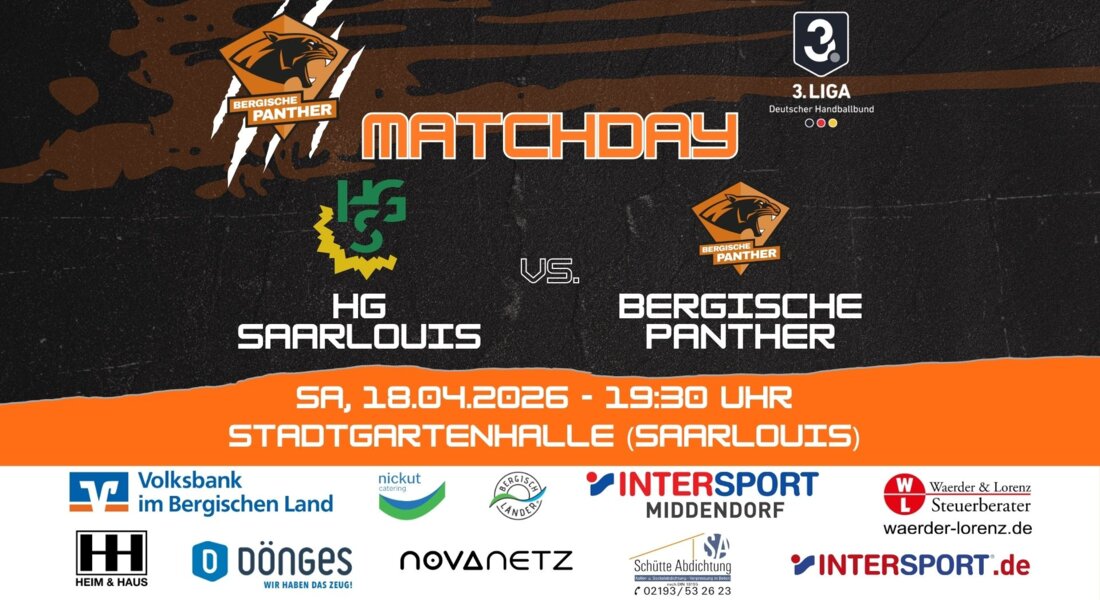 Vorbericht: HG Saarlouis - Bergische Panther (Sa, 18.04.2026, 19:30 Uhr)