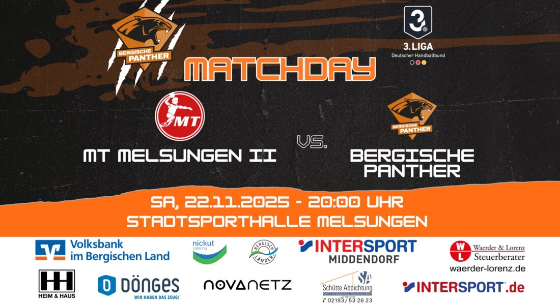 Vorbericht: MT Melsungen II – Bergische Panther (Samstag, 22.11.2025, 20:00 Uhr)