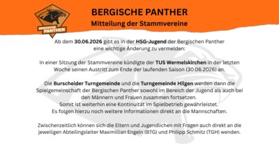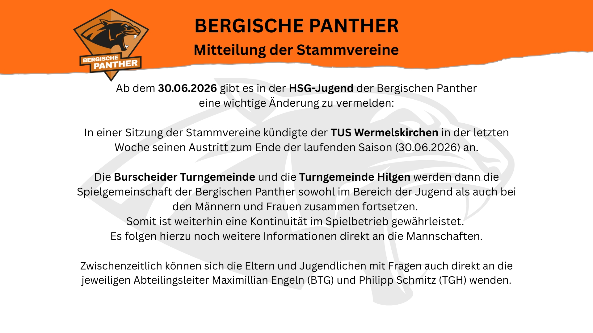 Wichtige Vereinsnews: Spielgemeinschaft der Bergischen Panther wird fortgeführt